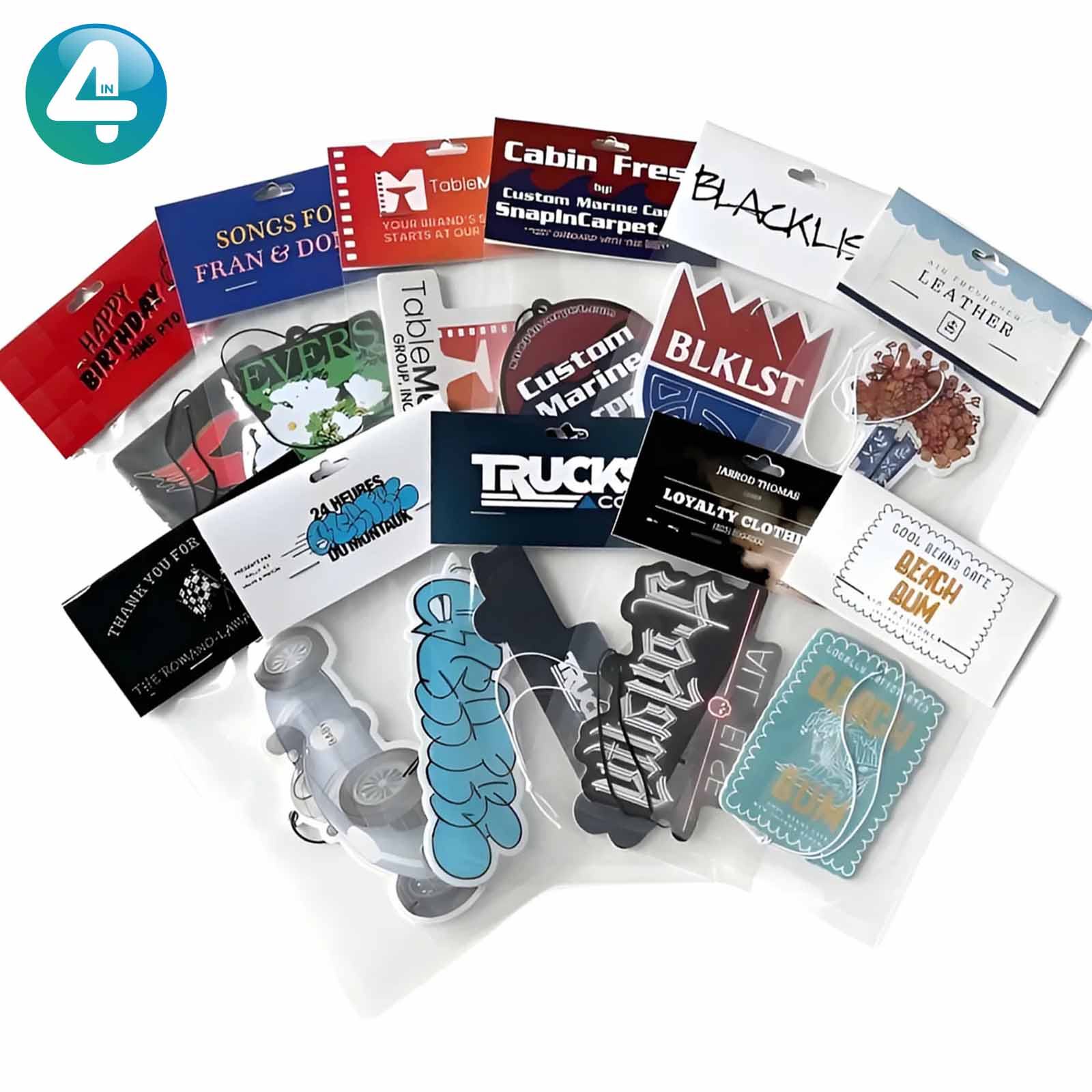 Our custom die-cut air fresheners deliver a great sensory experience. It starts with a durable fiberboard base, enhanced by vivid, full-color printing that resists fading, and completed with a long-lasting, premium fragrance.