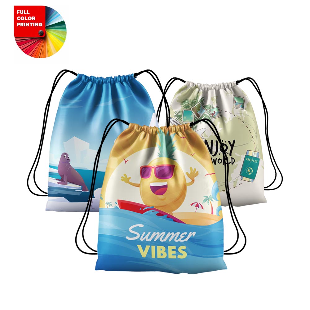 Our custom drawstring bags are made of 210D polyester with PP straps, which can expand to hold many daily items, perfect for use at the gym, kids, sports, and more.