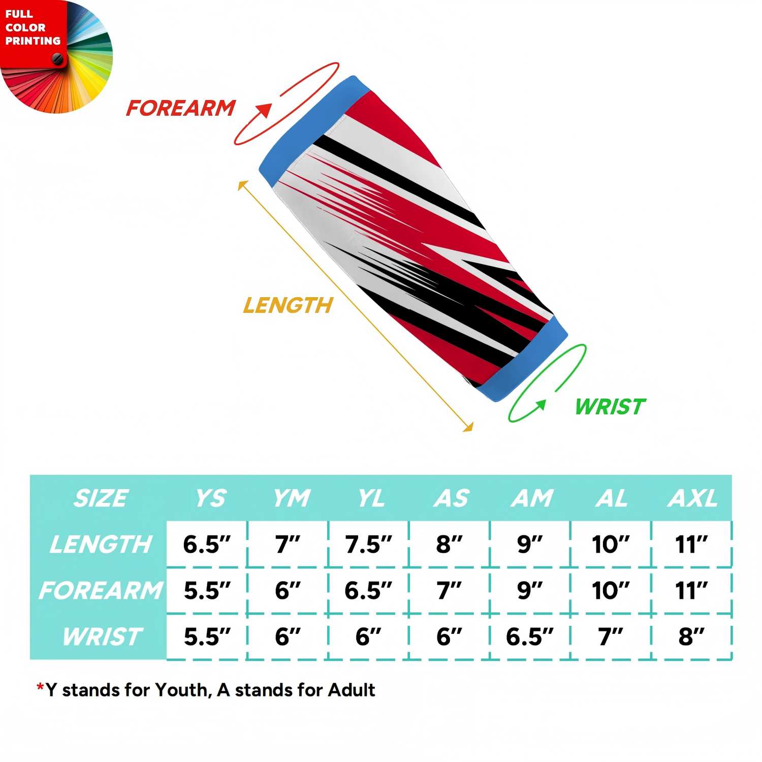 Our Custom Short Sleeves are designed to cover the elbow and forearm, sold by the pair. Crafted from high-performance 94% Polyester and 6% Spandex with a silky Ice Silk feel, they offer lightweight breathability and just the right amount of compression where you need it most.