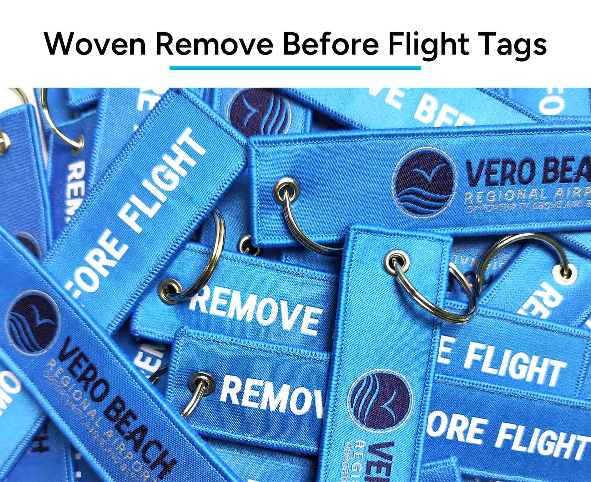 If you want to create your own customized jet tag keychains with sturdy keyring, we can provide you with three premium options: Embroidered, Woven, and Printed jet tags.