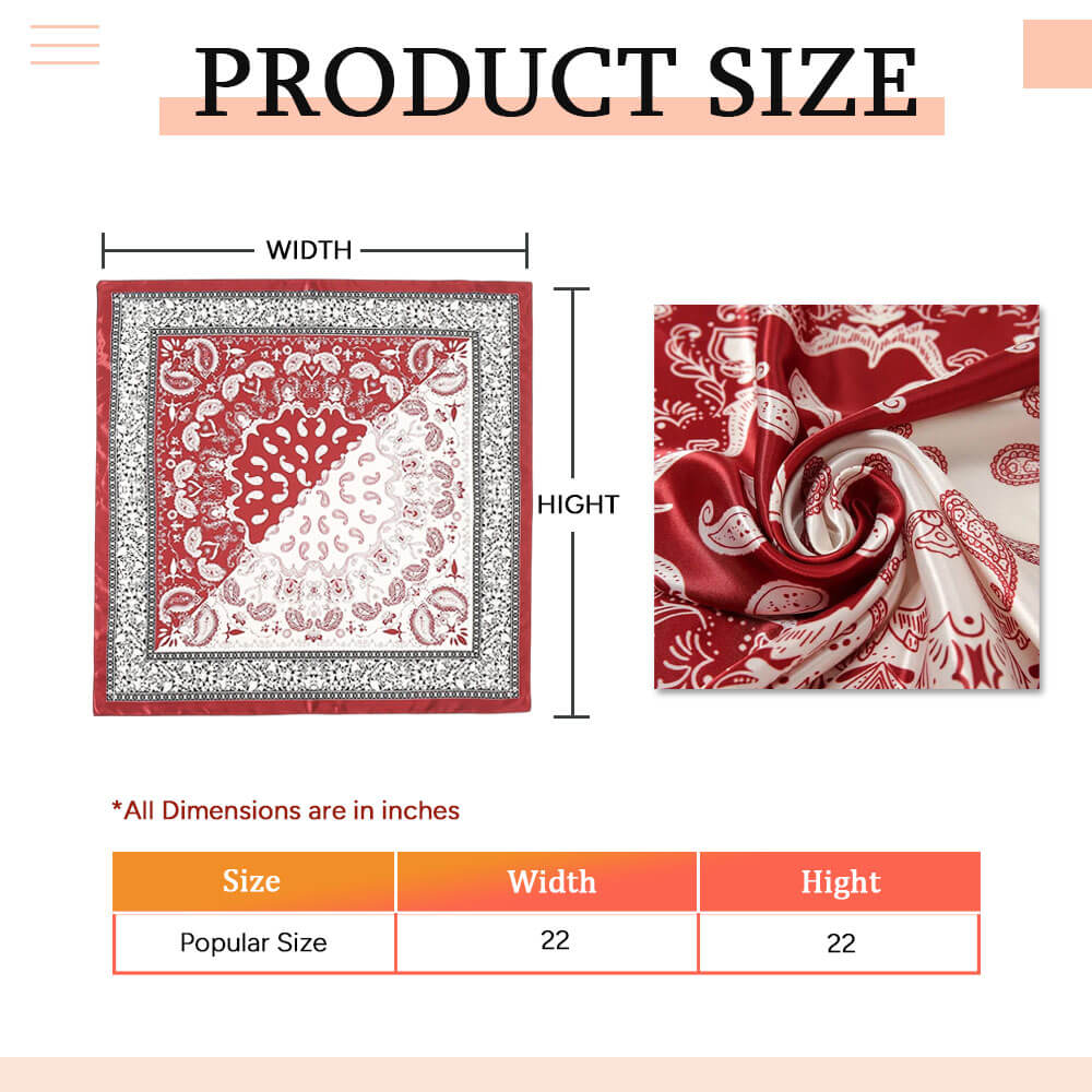 Custom satin bandanas offer a luxurious look and texture, making them the top choice for most fashionistas. Our advanced full-color printing process allows you to print any elements you like, including brand information, patterns, etc., making it an eye-catching fashion brand item.