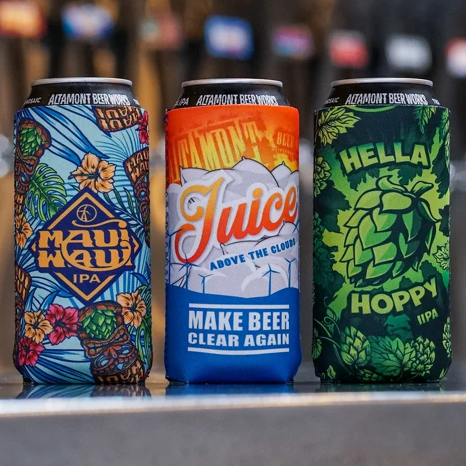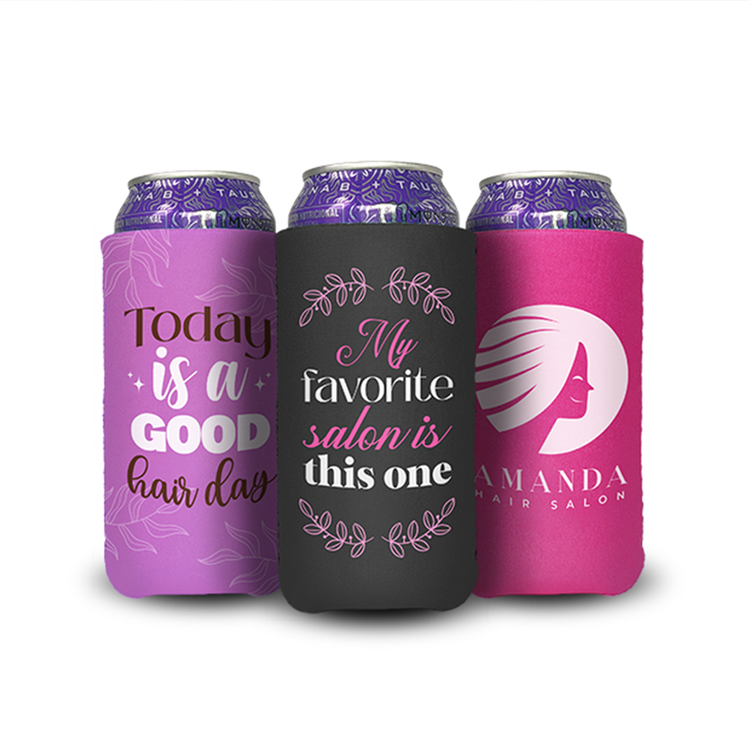 Our custom can koozies are made from high-quality neoprene and utilize sublimation printing, allowing you to print any colorful logo you desire, turning them into mobile billboards for your branding!