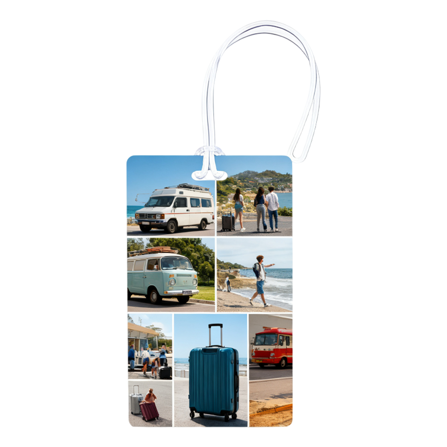 Printed in full color on both sides, these custom PVC luggage tags are perfect for displaying photos of family, friends, pets, vacations, corporate identity.