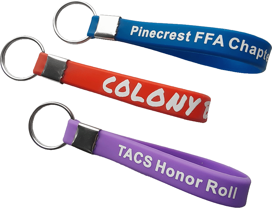 Custom printed silicone keychains truly shine in the world of promotions! As an industry leader with decades of printing experience, we have reliable screen printing process and design experience. By printing thick, bright inks, custom silicone wrist keychains will not fade, peel, or scratch with daily use. Our custom silicone rubber keyrings will always keeping your logo crisp and sharp, perfect for promoting your fundraiser, brand, business or nonprofit! In addition, our fast proofing and extremely short production turnaround time are ideal for your urgent needs. Recognized by over 600 customers for our professional service and consistent reliability, 4inLanyards® is a partner you can trust for every custom silicone keychains order. Please do not hesitate to contact us to get your useful and affordable custom printed wristband keychains!
