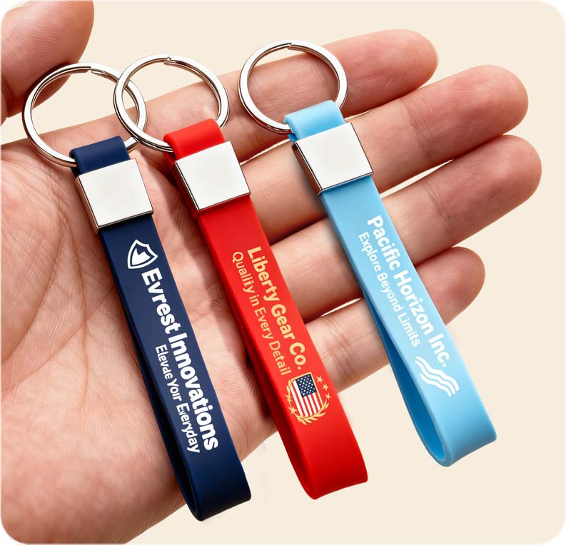 Stand out from the competition with our promotional silicone keychains! In today's competitive marketplace, you need products that do more than just get noticed. They need to stay noticed, day after day, month after month. It just so happens that custom silicone key rings offer something rare: tangible, lasting connections with your audience. They become trusted daily companions that silently reinforce your brand's presence every time someone reaches for their keys. The core point of custom logo silicone keychains is that they can help you greatly save your budget. After all, its purchase cost is only 1/2 of a custom lanyard and just 1/4 of a custom luggage strap. Act now and get custom silicone rubber keychains to create the most cost-effective marketing!